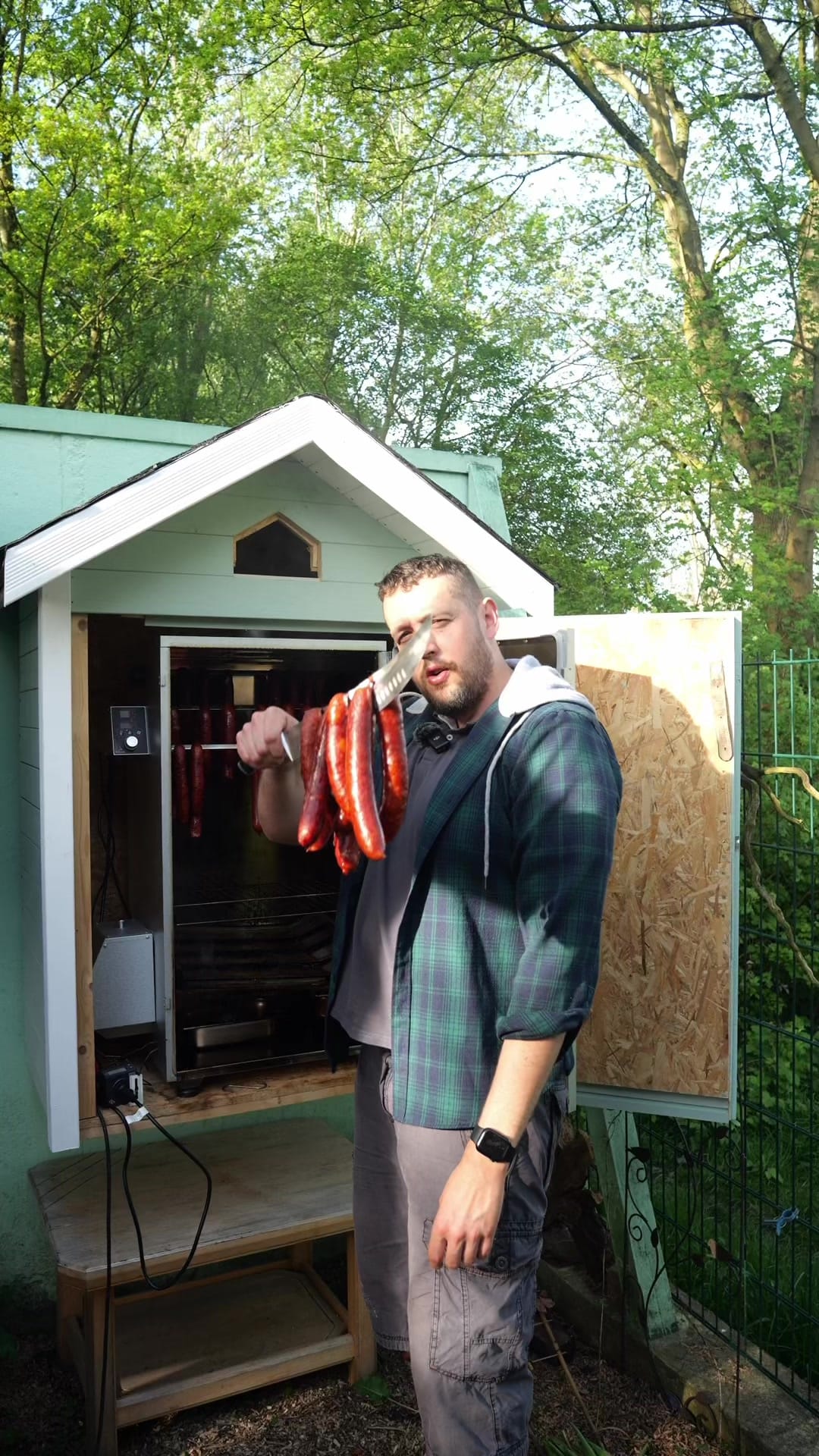 Zutaten -400g Schweineschulter -300g Rinderbrust -200g Rückenspeck -100ml Eiswasser -halbe frische Zwiebel -20g Pökelsalz -3g Muskatnuss -3g Paprikapulver -4g Pfeffer -2g Gestoßene Senfkörner -8 Meter Schweine Darm 30mm Der Räucherofen ist von Borniak #cabanossi #wurst #rezept #food #räuchern #lecker #колбаски #рецепт #коптить