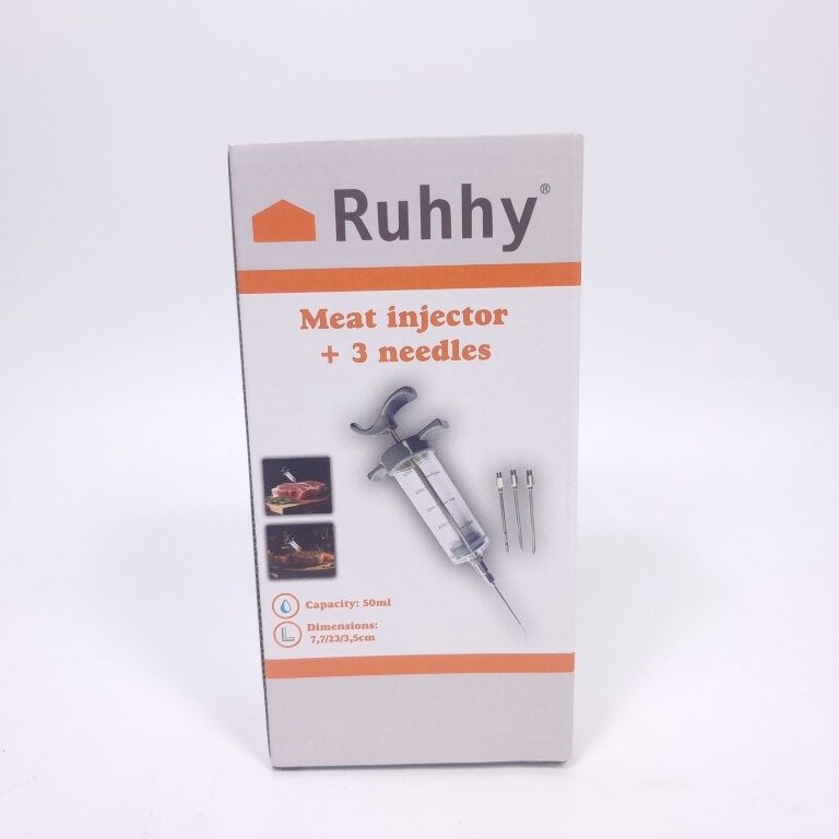 High-quality meat marinade injector made from food-grade stainless steel and safe PP plastic. An essential tool for preparing juicy, flavourful dishes – from turkey to grilled steaks.